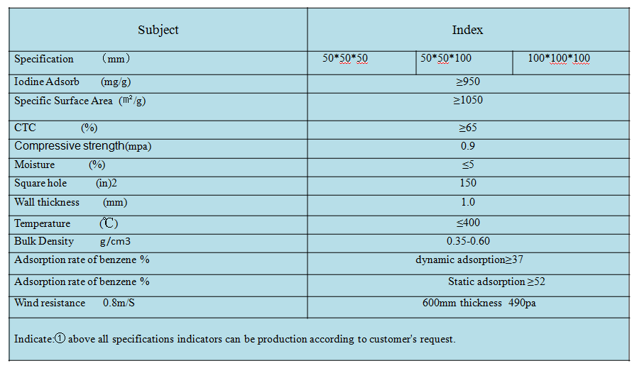 Honeycomb activated carbon can be divided into two kinds: water resistance honeycomb activated carbon and no water resistance honeycomb activated carbon.